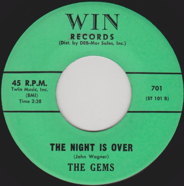 Die Gems aus Evanston, Illinois, waren ein Quintett, bestehend aus den schwarzen Sängern Ray Pettis, Lead-Tenor, Bobby Pee Wee Robinson, erster Tenor und Gitarre, David Moose Taylor, zweiter Tenor, Wilson James, Bariton und Bass, sowie Rip Reed, Bass.