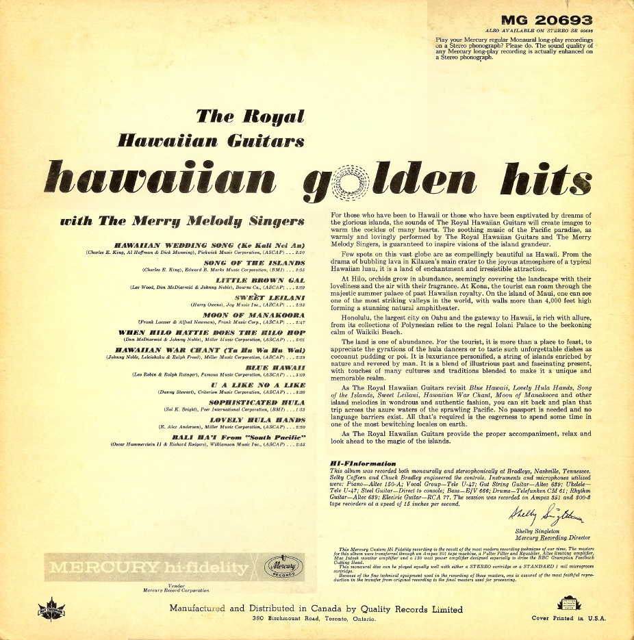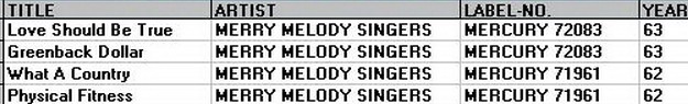 eine weitere Vocal-Backing Group neben den Jordanaires oder den Anita Kerr Singers waren The Merry Melody Singers, die bei diversen Interpreten mit genannt werden.