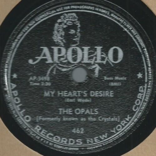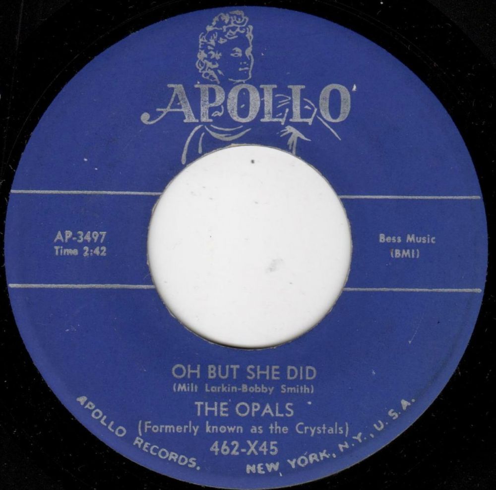 10 54....462-X45....THE OPALS (Formerly known as the Crystals)..Oh But She Did (AP-3497)/My Heart's Desire (AP-3498)
