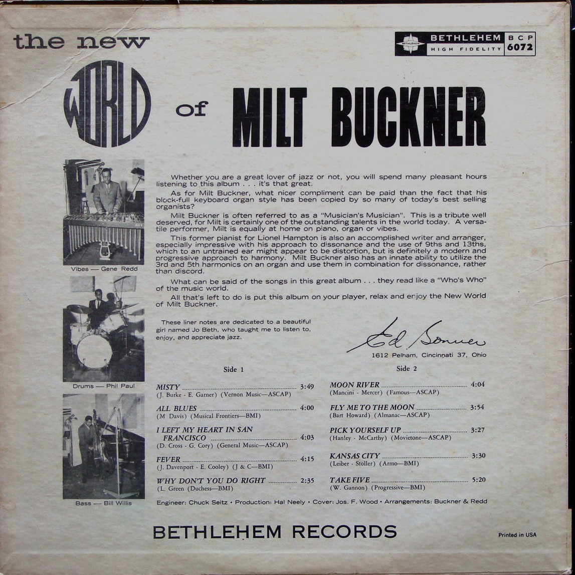 Eine "zeitgemäße" Schallplatte von Milt Buckner habe ich leider nicht in meiner Sammlung. Die französische BLACK and WHITE stammt vom September 1968.
