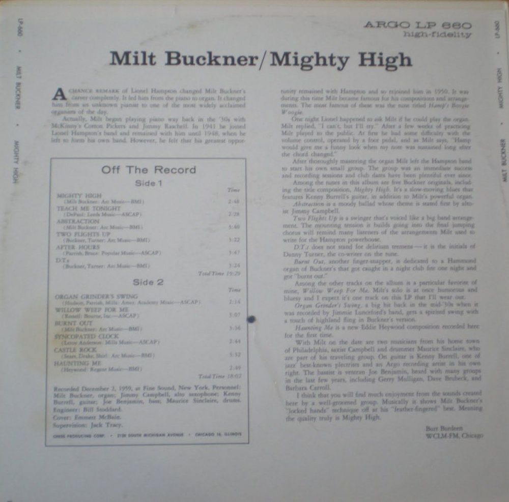 01 60....5356....MILT BUCKNER..Mighty High (9913)/Organ Grinder's Swing (9909)