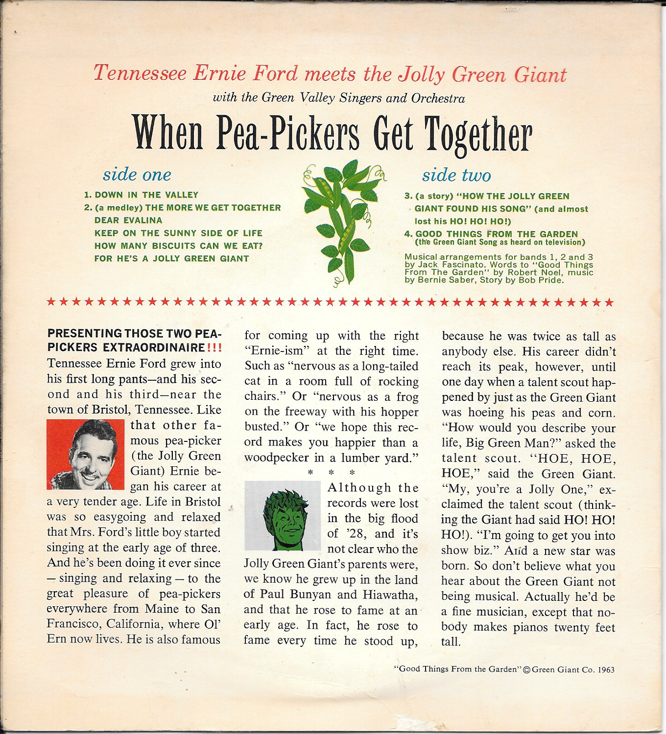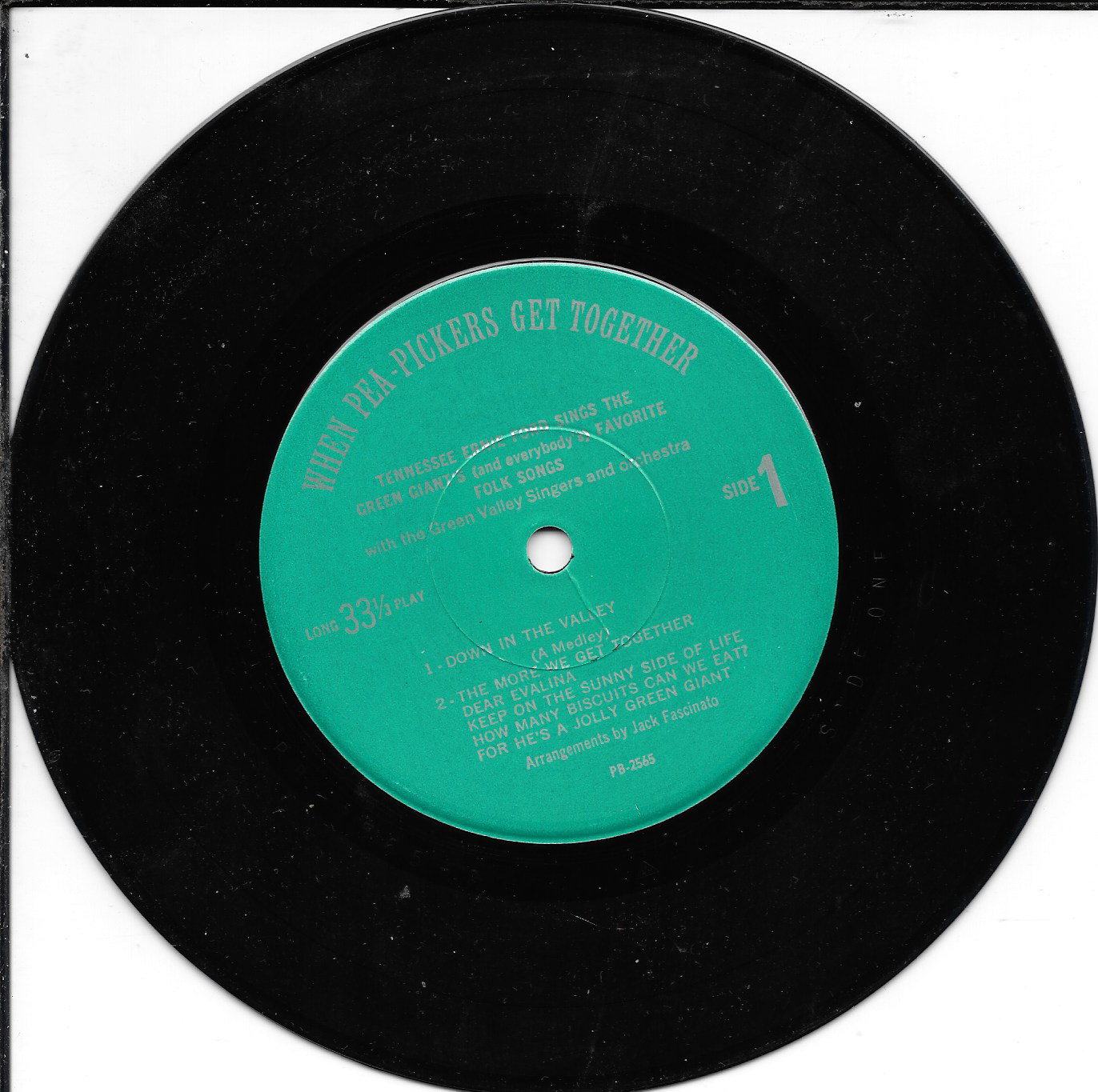 1963 nahm Tennessee Ernie Ford für Jolly Green Giant Co. eine Mini-LP auf. Die in EP Größe und mit 331/3 UM.