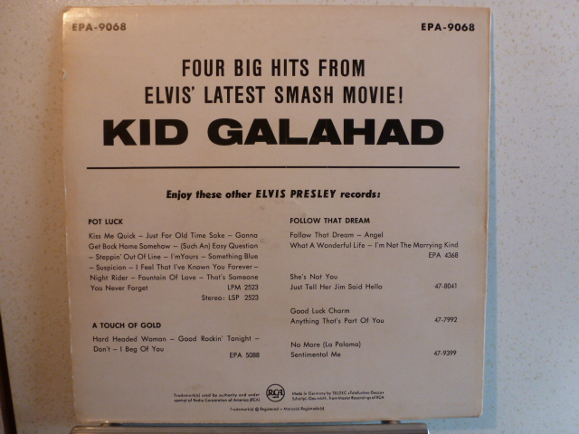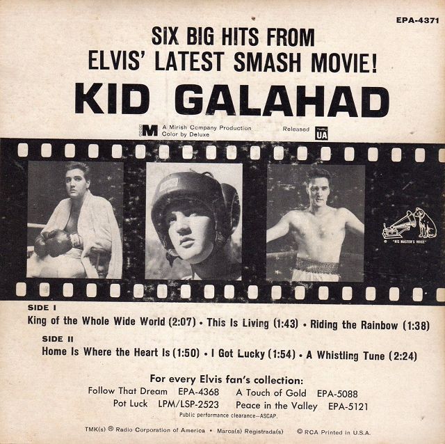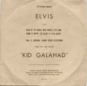 Hier eine weitere EP-Single von Elvis aus seinem Boxerfilm Kid Galahad. Ursprünglich gab es ja sechs Songs in dem Film. In Deutschland gab es zu dieser 4-Track-EP noch die Single King of the whole wide world. In UK und in USA gab es nur diese EP allerdings mit 6 Songs drauf.