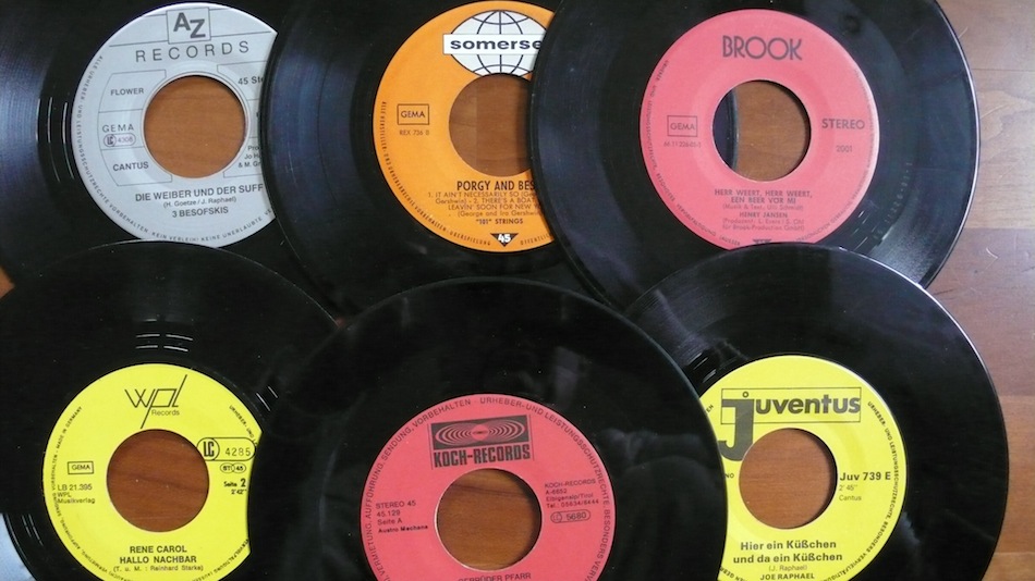 Ferner habe ich von einem "Musikboxenbestücker" ca. 300 Singles ohne Cover bekommen. Fast ausschließlich Deutsche Schlager.