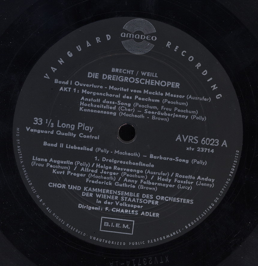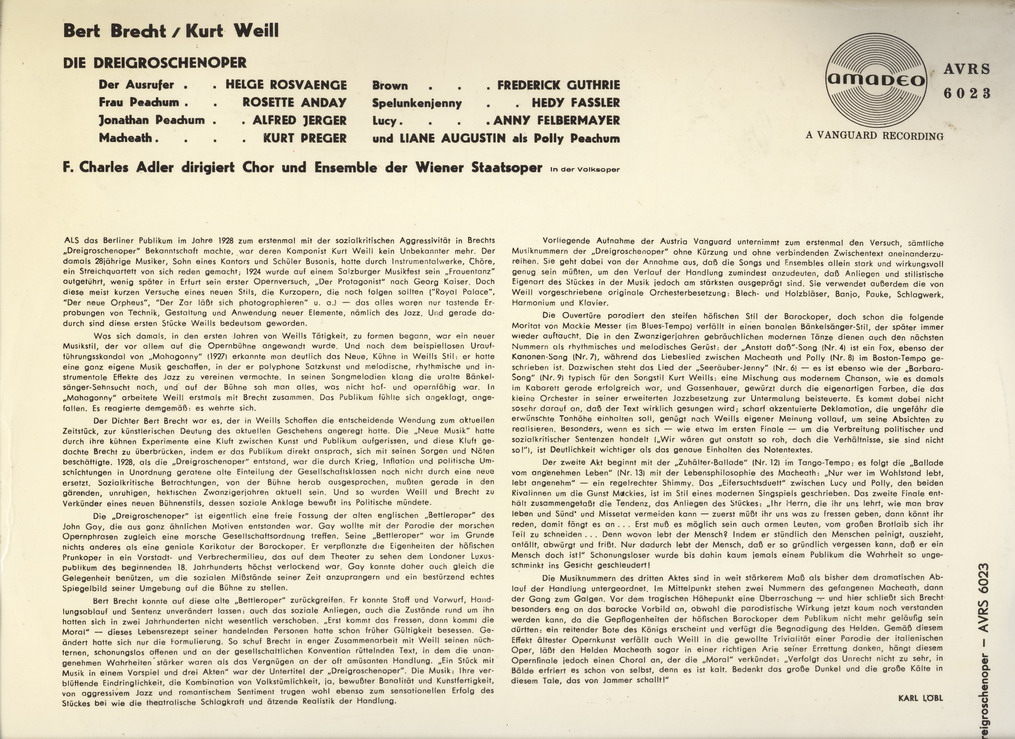 Amadeo (u.a. Auszüge aus "Die Dreigroschenoper" & Chor und Ensemble der Wiener Staatsoper), Polydor (u.a. EP 21345 "Aus der Wiener Eden-Bar"),