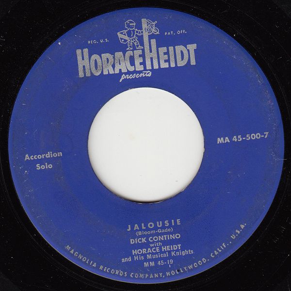 (?? 49)….MA 45-500-7….DICK CONTINO with HORACE HEIDT and His Musical Knights..Jalousie (MM 45-19)/-8….Caravan (MM 45-4)