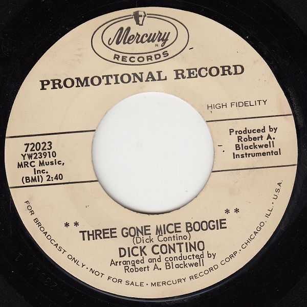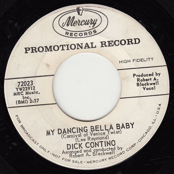 09 62....72023....DICK CONTINO Arranged and conducted by Robert A. Blackwell..Dancing Bella Baby (Carnival Of Venice Twist) Vocal (YW23912)/ Three Gone Mice Boogie Instrumental (YW23910)