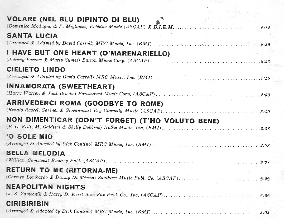 11 50….47-3961-A….Dick Contino Accordion with Orchestra and Chorus conducted by Dewey Bergman..Roman Guitar/-B….Dick Contino Accordion with Orchestra conducted by Dewey Bergman..Beer Barrel Polka (Roll Out the Barrel)
