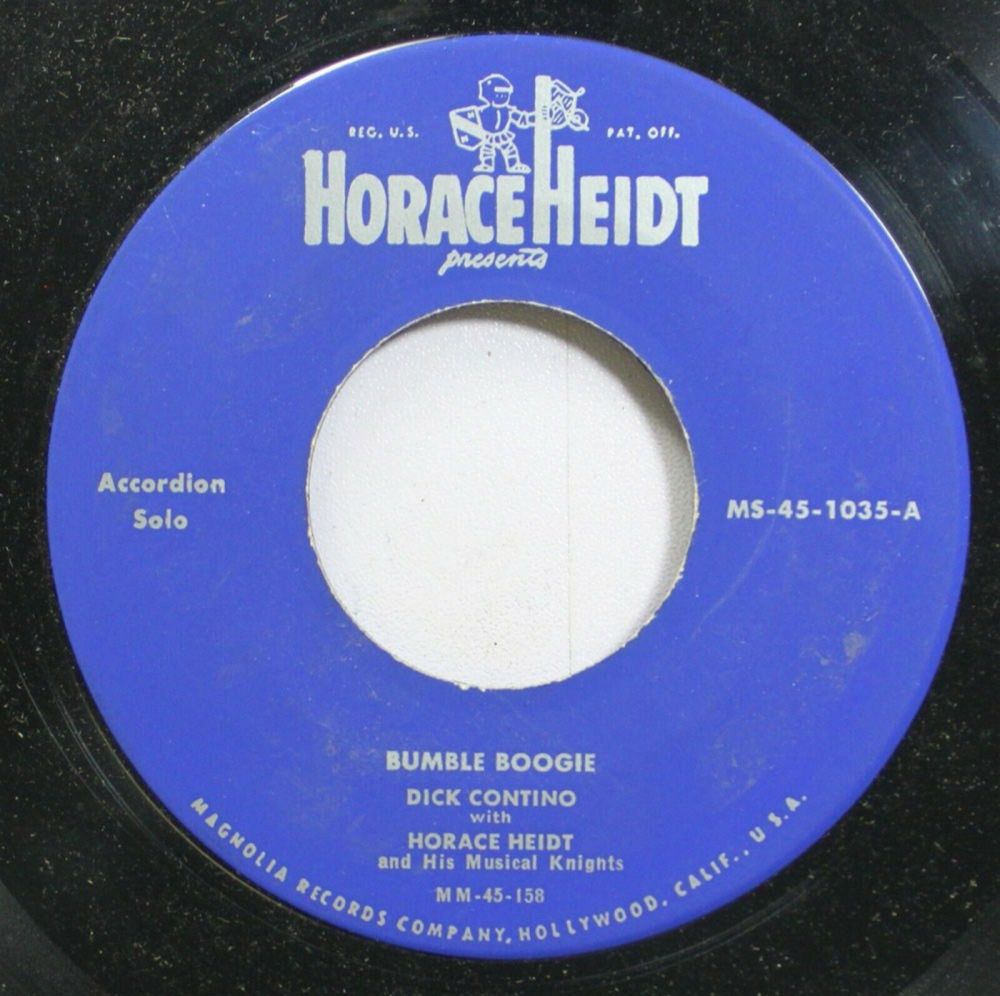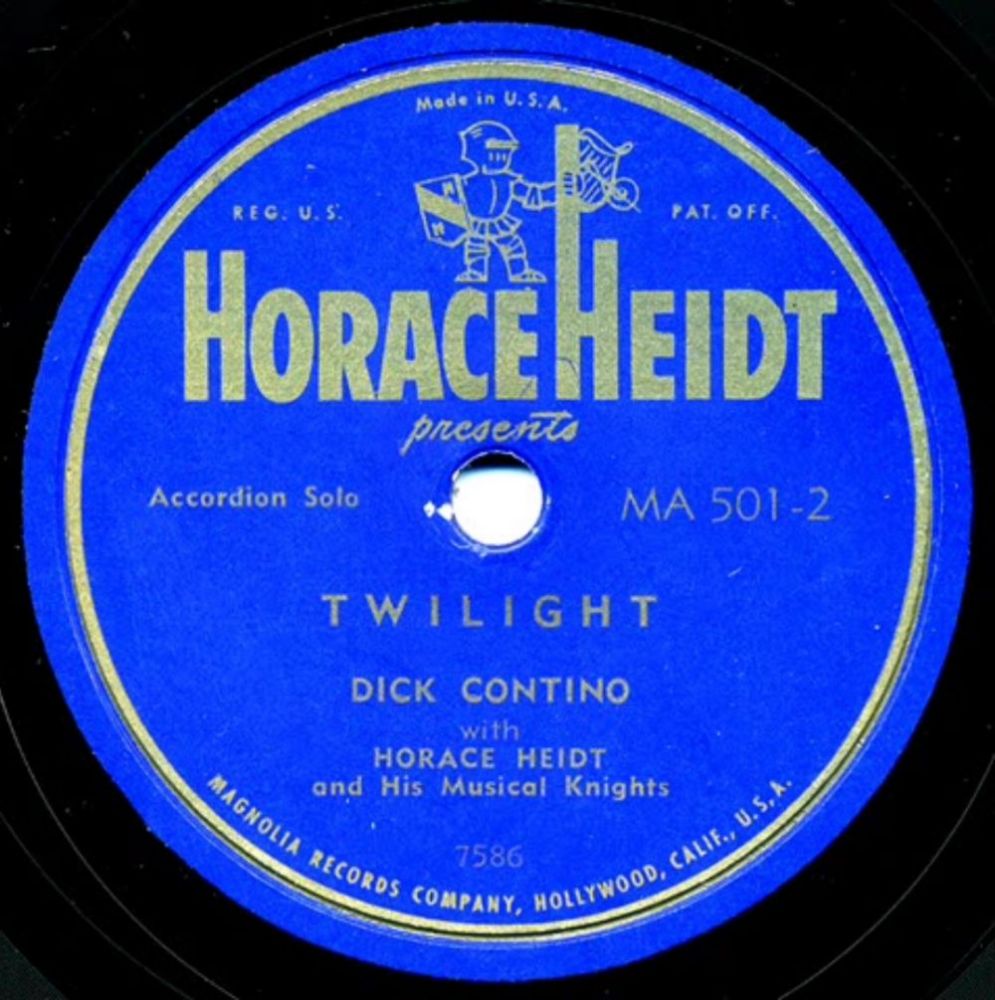 (05 49)….MA 45-501-1….DICK CONTINO with HORACE HEIDT and His Musical Knights..Contino Boogie (MM 45-5)/-2….Twilight Time (MM 45-??)