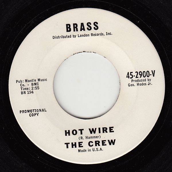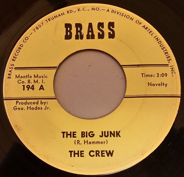 George W. Hodes Jr., der Besitzer von "Prior Brass Co.", aus Kansas City, Missouri, produzierte ab etwa 1963 Musikstücke, die er mit diversen Musikern in seinem Wohnzimmer aufnahm und dann mit Hilfe seiner Firma "Artel Industries, Inc." auf seinem BRASS-Label auf den Markt brachte. Darunter befand sich auch die Gruppe The Crew, die Jahrzehnte später die Vinyl-Sammler-Gemeinde in unseren Breiten mit Novelty-Instrumentals begeistern sollte. Laut der "Instrumental-Bibel" Nothin' But Instrumentals soll The Crew bereits 1959 auf YUCCA eine Instrumental-Single veröffentlicht haben, wofür ich aber keinerlei Belege fand. Außerdem passt die Bestellnummer zu den uns bekannten YUCCA-Label aus Alamogordo, New Mexico, überhaupt nicht dazu. Noch vor BRASS fand ich zweimal The Crew als Begleitband. Ob eine Identität gegeben ist, konnte ich leider nicht feststellen.