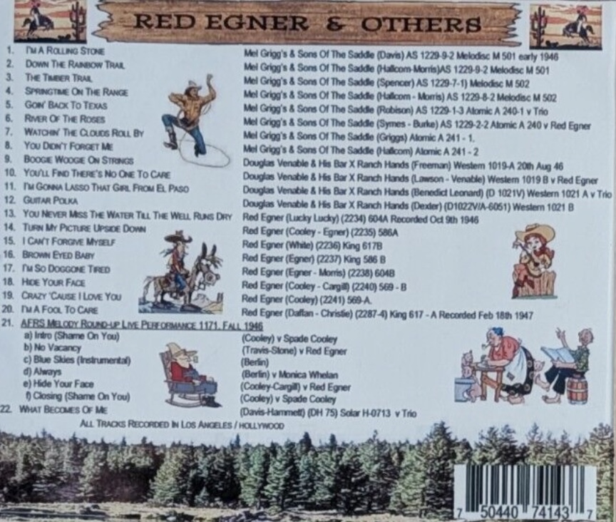 hier geht es um C&W/Western Swing. Nachdem der Bandleader Spade Cooley 1946 den Band-Sänger Tex Williams rausgeschmissen hatte, übernahm seit Januar 1947 Ardith "Red" Egner den Vocal-Part in der Band.