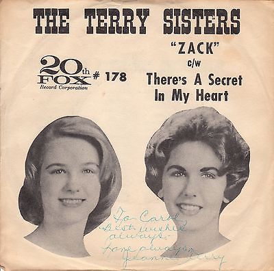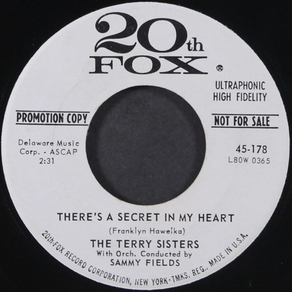 02 60....45-178....THE TERRY SISTERS with Orch. Conducted by SAMMY FIELD..There's A Secret In My Heart (L8OW 0365)/Zack (L8OW 0366)