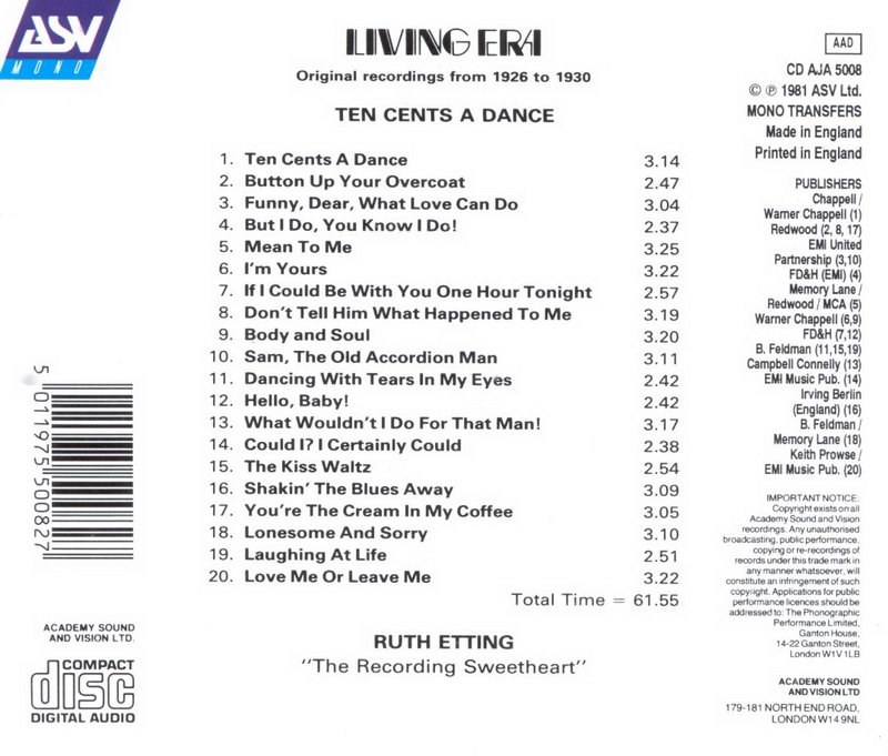 | Information: | RUTH ETTING - YOU'RE THE CREAM IN MY COFFEE |