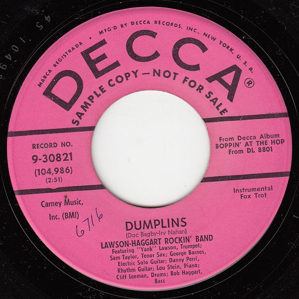 Da du wie bei einem Songtitel-Forum beginnst, passt ganz gut eine kurze Story aus meiner Jugendzeit dazu. Weder das Original von "Dumplin's" noch die Freeman-Version gab es bei uns in den Läden. Erst als Lawson & Haggart und ihre Rockin' Band diesen Titel im Herbst 1958 mit ihrer LP "boppin' at the hop" (DECCA DL 8801) veröffentlichten und davon im Jänner 59 die Cuts von "Pinetop's Boogie Woogie" und "Dumplins" als Single entstand (DECCA 9-30821), kam dieser Titel im Frühjahr 1959 mit BRUNSWICK 12 167 auch zu uns und diese Version gefällt mir auch heute noch am allerbesten, wobei natürlich auch die Erinnerung einen großen Anteil an dieser subjektiven Bewertung haben wird.