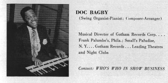 Der schwarze Pianist, Organist, Komponist, Labelbesitzer (RED TOP) und Orchesterleiter Doc Bagby wurde als Harold Bagby in Philadelphia, Pennsylvania, geboren.