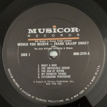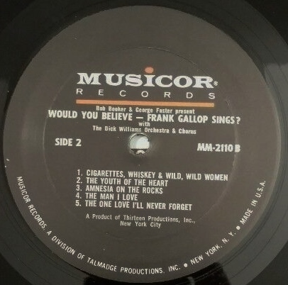 08 66....MU-1191....FRANK GALLOP Music Direction by Dick Williams..The Son Of Irving (ZTSP-122095)/The One Love I'll Never Forget (ZTSP-122096)