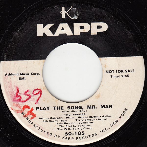 09 54....50-105....THE HIPSIES Johnny Guarneri - Piano George Barnes - Guitar Bob Gaunt - Bass Terry Snyder - Drums Bela Horvath Cymbalom The Beat by Sy Oliver The Vocal by Big Claude..Play The Song, Mr. Man (im deadwax gestempelt: E4KW-5572)/THE HIPSIES Johnny Guarneri - Piano George Barnes - Guitar Bob Gaunt - Bass Terry Snyder - Drums Bela Horvath Cymbalom ..Gypsy Boogie (im deadwax gestempelt: E4KW-5573)