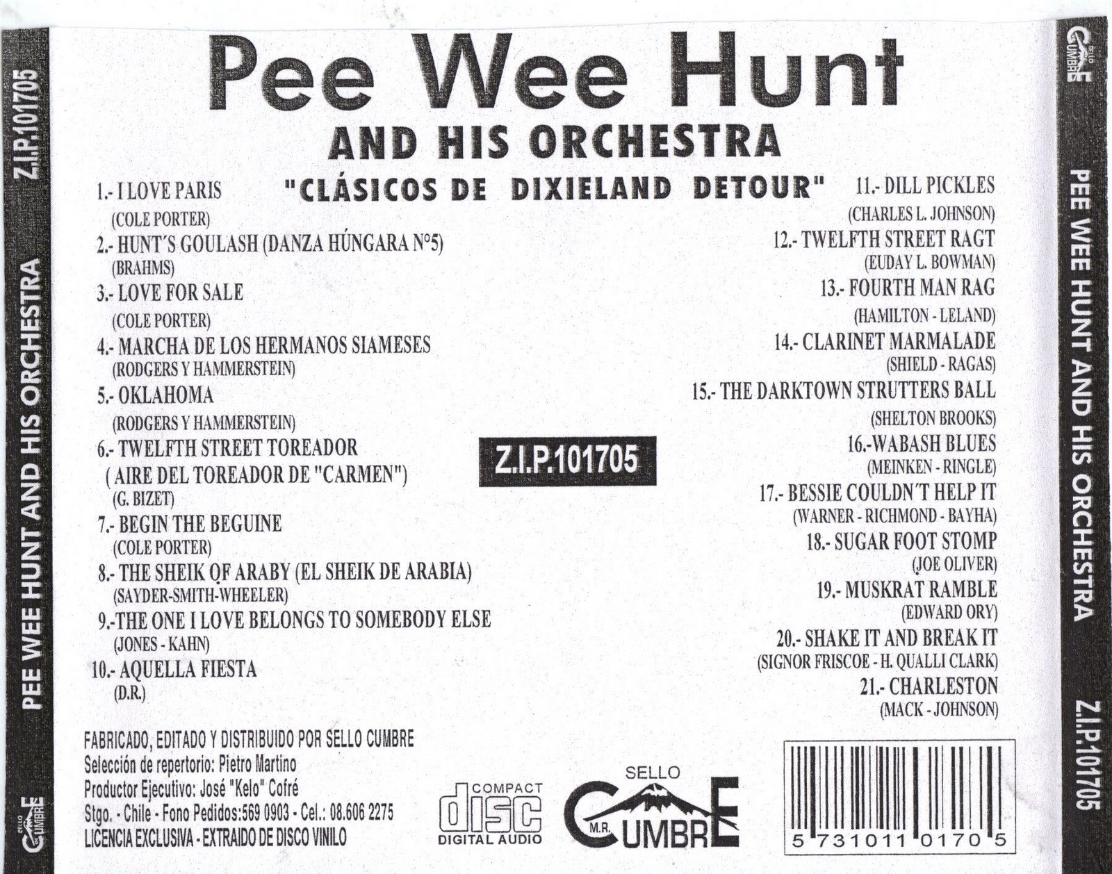 Der Posaunist, Sänger und Band-Leader Pee Wee Hunt wurde am 10. Mai 1907 in Mount Healthy, Ohio, als Walter Gerhardt Hunt geboren und verstarb nach längerer schwerer Krankheit am 22. Juni 1979 in Plymouth, Massachusetts.