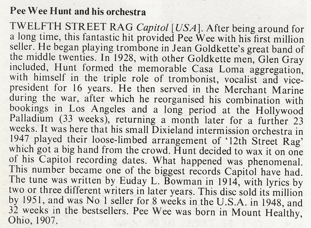 So gab es Pee Wee Hunt bei uns auf Single: