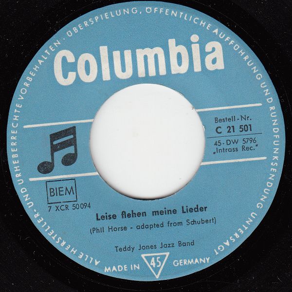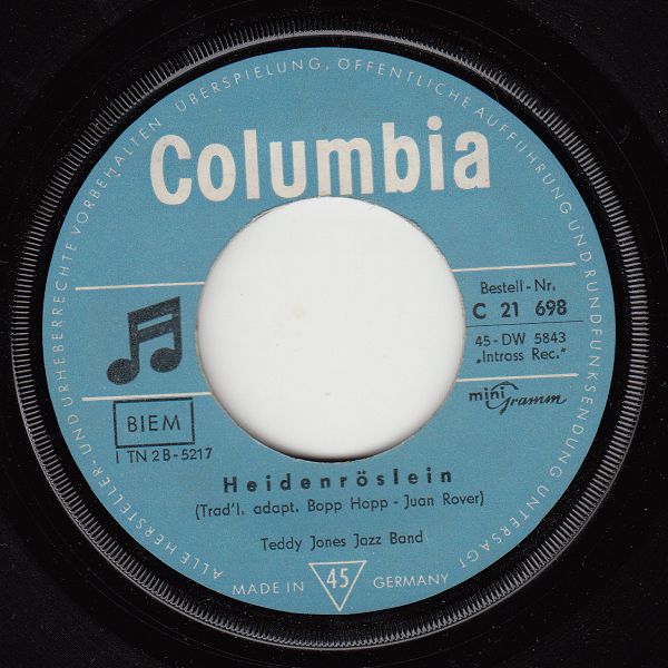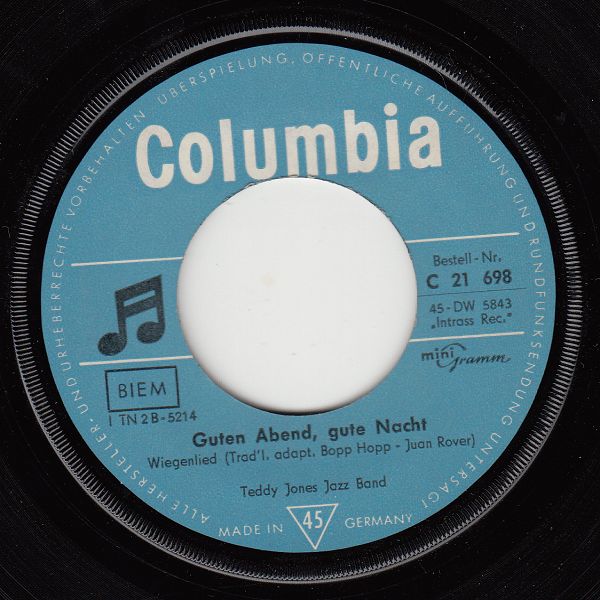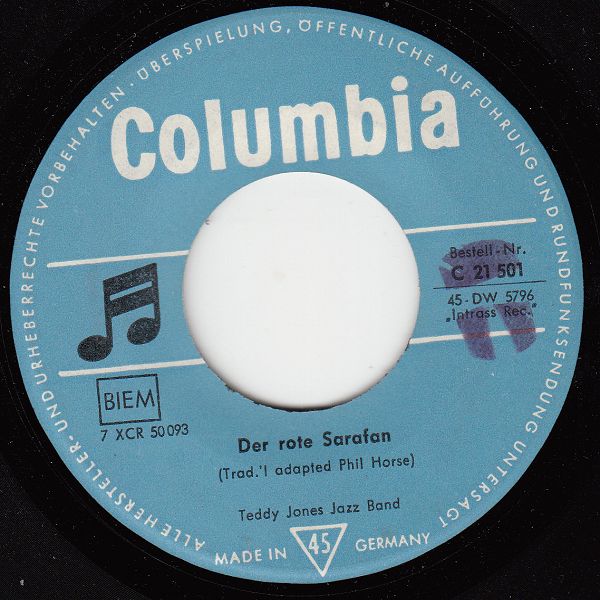 Wer hinter Teddy Jones steckt, konnte ich leider nicht herausfinden. Jedenfalls dürfte er aus den Niederlanden stammen, denn dort gab es von ihm drei Singles unter dem Namen "Teddy Jones Jazz Band". Davon wurden zwei Titel von den Belgiern und vier Titel von "uns" übernommen.