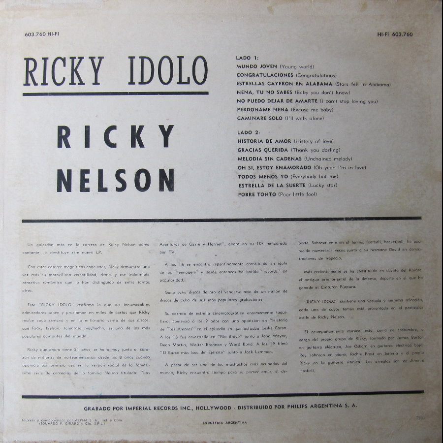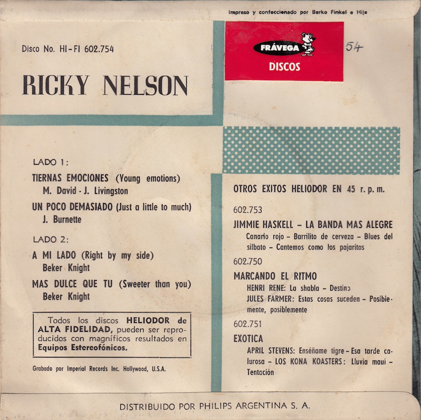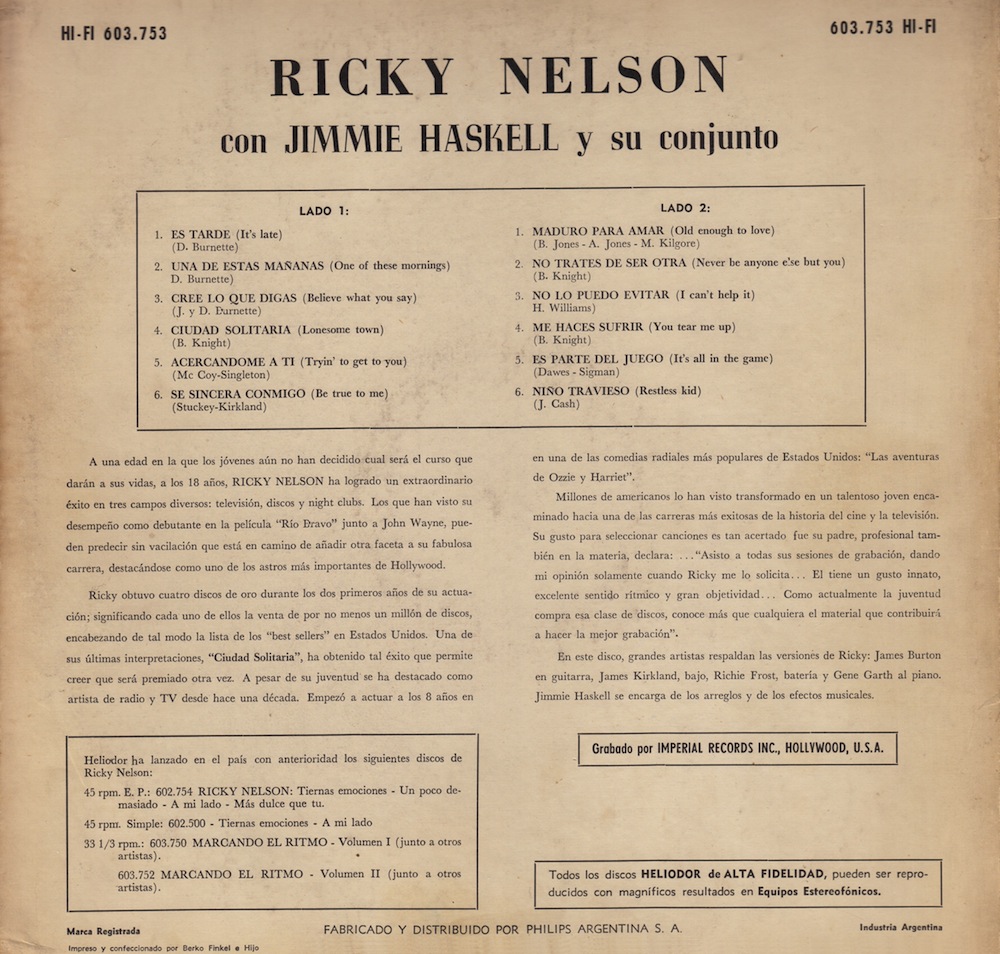auf dem Heliodor Label veröffentlicht. Es gibt von Ricky Nelson 2 LP's und einige EP's, die ich hier vorstelle!