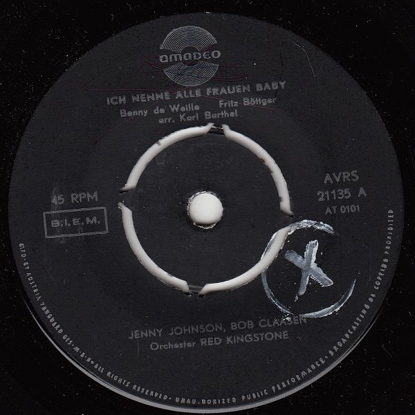 ?? 59....AVRS 21135 A....JENNY JOHNSON, BOB CLAASEN Orchester RED KINGSTONE..Ich nenne alle Frauen Baby (AT 0101)/ B....Orchester RED KINGSTONE..Limehouse-Dixie (AT 0105)