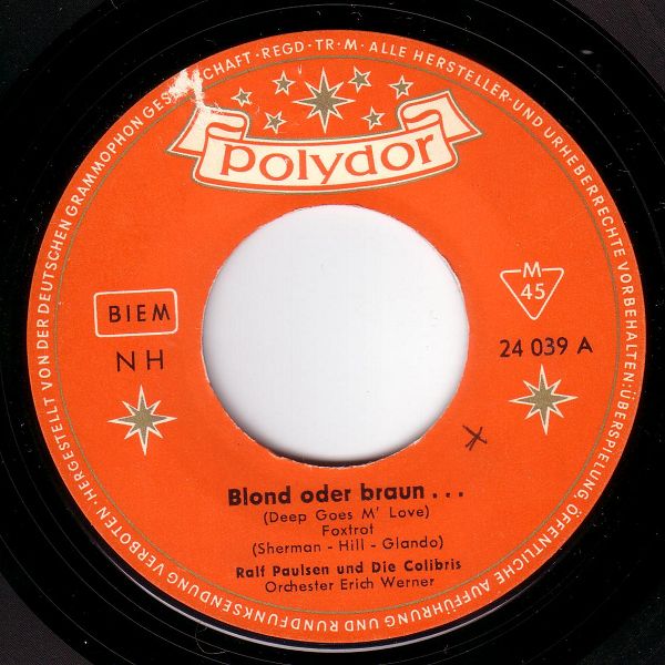 Polydor 24039 ("Blond Oder Braun (Deep Goes My Love)"/"Tieni-Wieni-Bikini (Teenie Weenie Bikini)" & RALF PAULSEN),