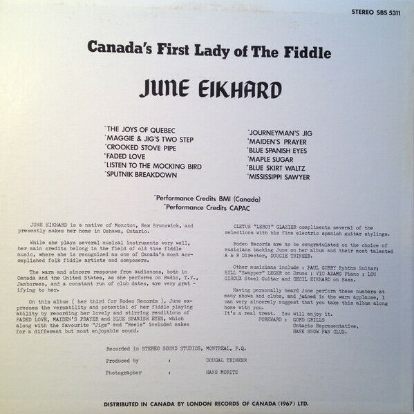 JUNE EIKHARD spielte in den 50er Jahren auf der Fiddle und anderen