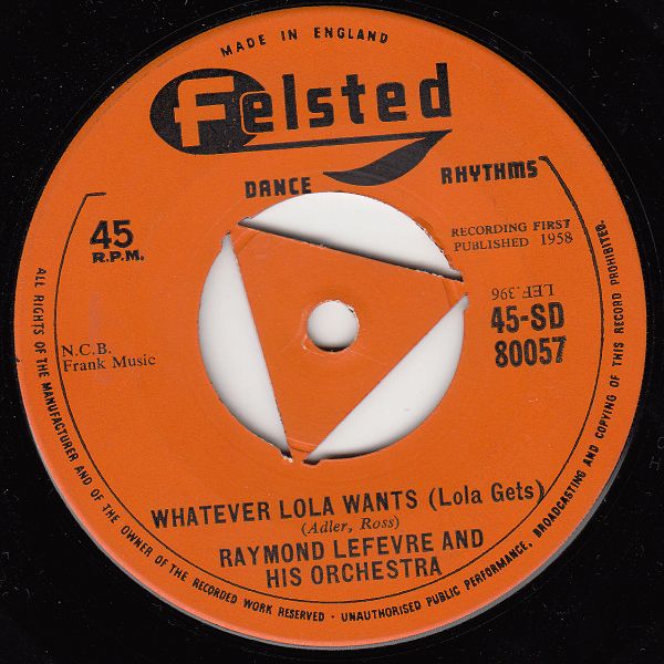 ?? 58....45-SD 80057....RAYMOND LEFEVRE AND HIS ORCHESTRA..The Day The Rains Came/Whatever Lola Wants (Lola Gets) (F: BARCLAY ??? )