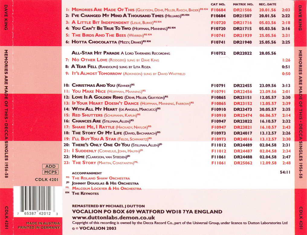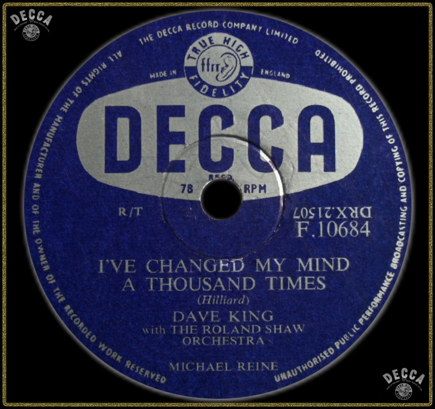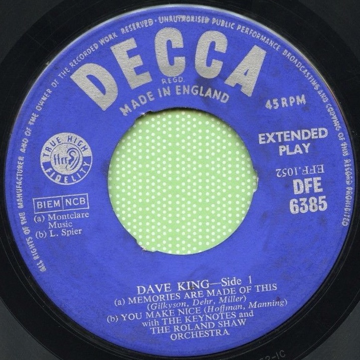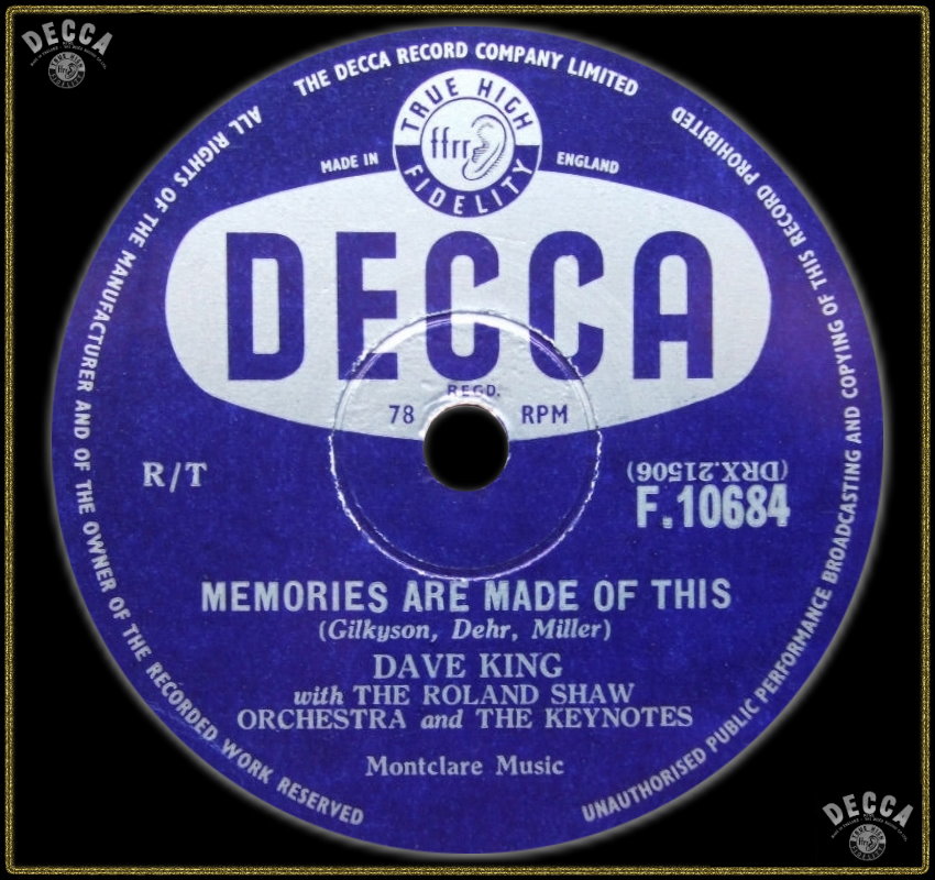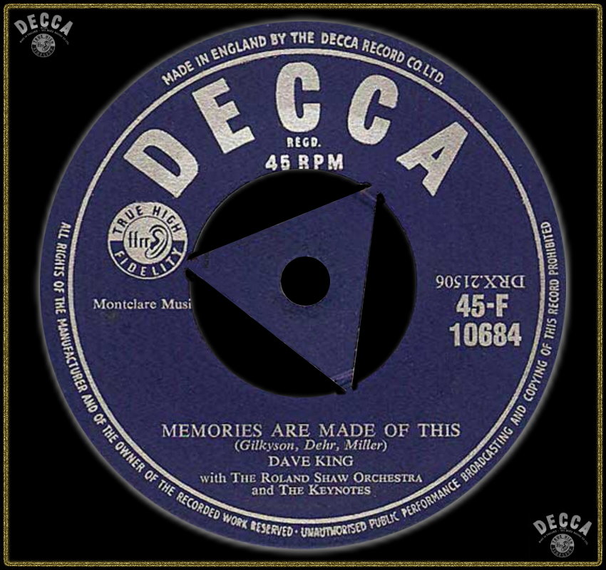 02 56....45-F 10684....DAVE KING with THE ROLAND SHAW ORCHESTRA and THE KEYNOTES..Memories Are Made Of This/DAVE KING with THE ROLAND SHAW ORCHESTRA..I've Changed My Mind A Thousand Times