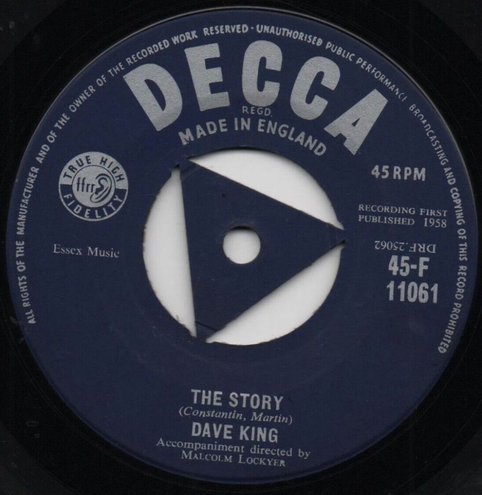 10 58....45-F 11061....DAVE KING Accompaniment directed by MALCOLM LOCKYER..The Story/DAVE KING Accompaniment directed by JOHNNY DOUGLAS..Home