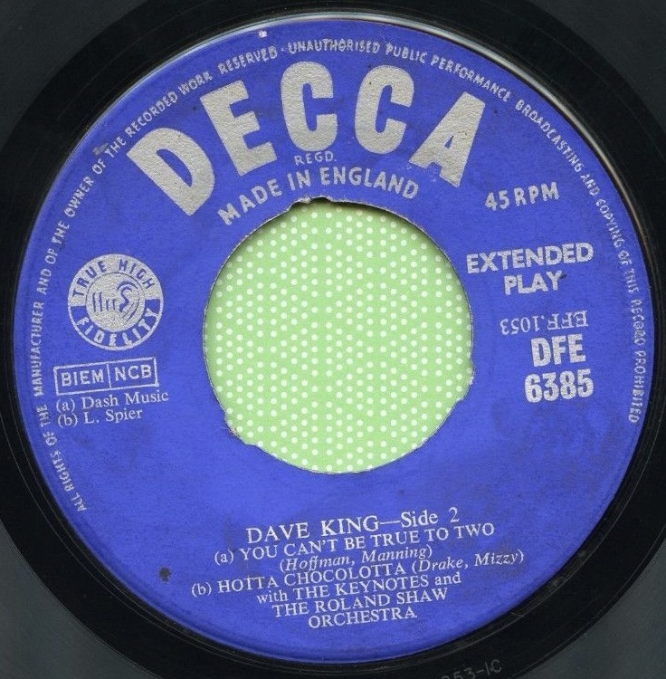 03 56....45-F 10720....DAVE KING with THE ROLAND SHAW ORCHESTRA and THE KEYNOTES..You Can't Be True To Two/A Little Bit Independent