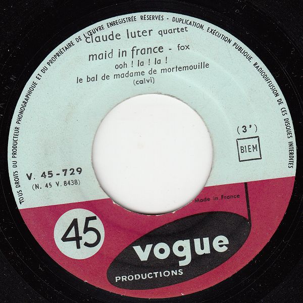 ?? 60....V. 45-729....claude luter quartet..Maid In France - fox ooh ! la ! la ! le bal de madame de mortemouille/Summerset - slow fox