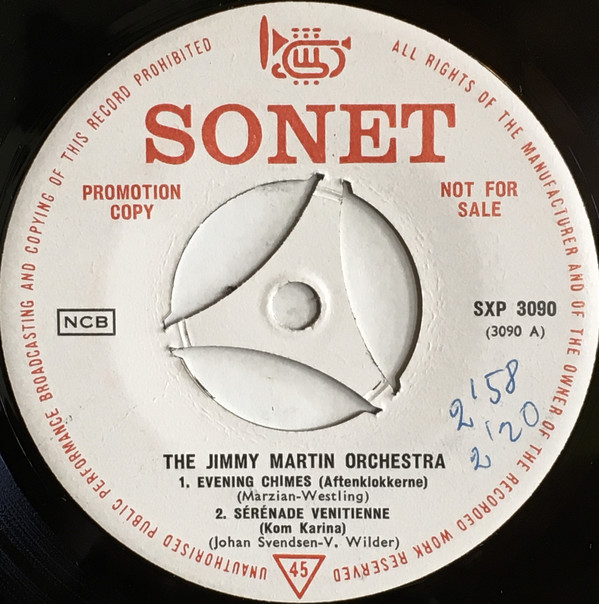 Leider konnte ich über Jimmy Martin, der ein dänisches Orchester leitete und vermutlich Trompeter war, überhaupt nichts biografisches finden. Vielleicht war Jimmy Martin sogar sein richtiger Name, wer weiß das schon? Jedenfalls arbeitete er eng mit Ray Hopkins und Svend Lundvig zusammen, die für ihn die Titel schrieben oder alte Titel neu arrangierten. Ray Hopkins war niemand Anderer als Gustav Winckler und Svend Lundvig war wie Martin auch Orchesterleiter, er begleitete beispielsweise die dänische Vokalgruppe Blue Boys.