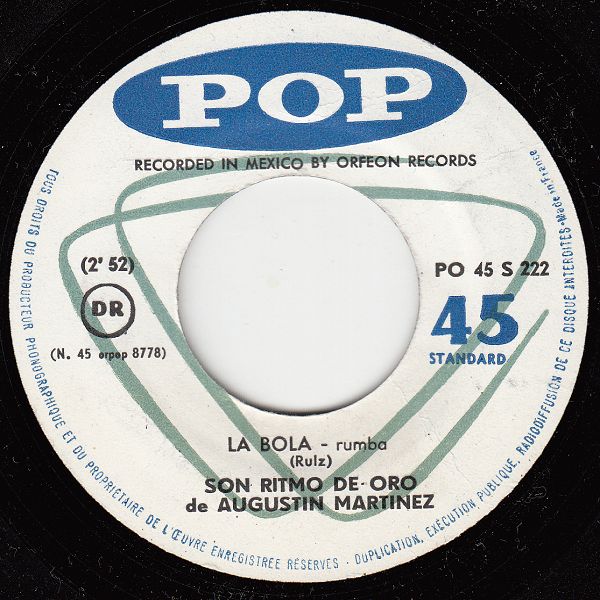 Das französische Label VOGUE, einschließlich des Sub-Labels POP, dürfte recht gute Verbindungen zu Lateinamerika gehabt haben und da die Singles für die Jukeboxen - die "normalen 45er" waren in Frankreich bekanntlich die EPs - auch für den Export verwendet wurden, kamen auch wir zu originaler lateinamerikanischer Musik wie beispielsweise hier mit Augustin Martinez aus Mexiko.