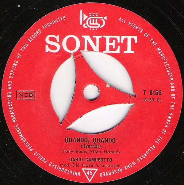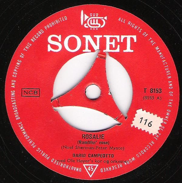 ?? 62....T 8153....DARIO CAMPEOTTO med Ole Høyer's kor og orkester..Rosalie (Ramblin' Rose)/DARIO CAMPEOTTO med Ole Høyer's orkester..Quando, Quando (Hvornår)