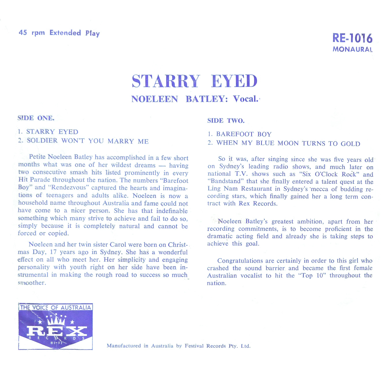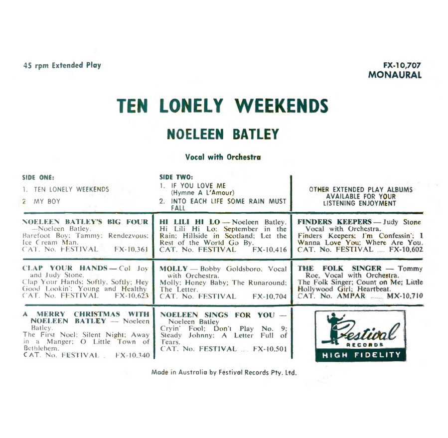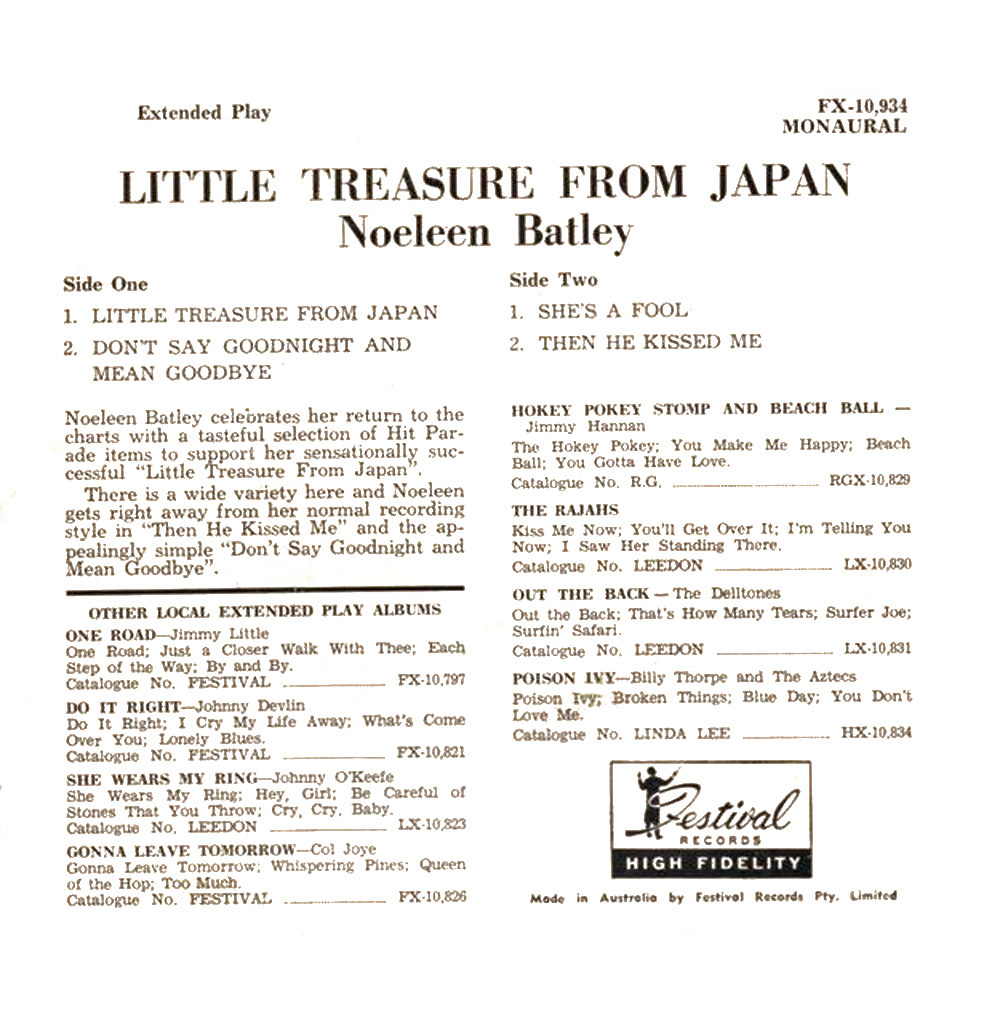 Noeleen Batley (born 25 December 1944) was an Australian pop star in the 1960s. She was known as "Australia's Little Miss Sweetheart"