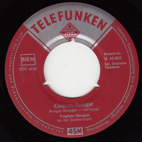 12 54....U 45 652....Virginie Morgan an der Zauberorgel..Cuban-Boogie/Coucou-Boogie (F: DUCRETET THOMSON Y 8594)