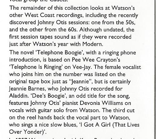 TELEPHONE BOOGIE von Johnny Guitar Watson, ein Song, der völlig unverdient damals