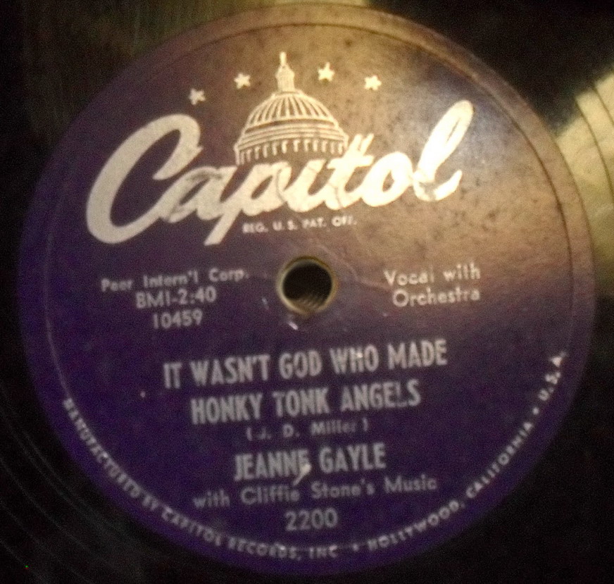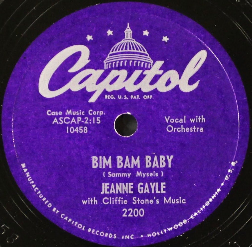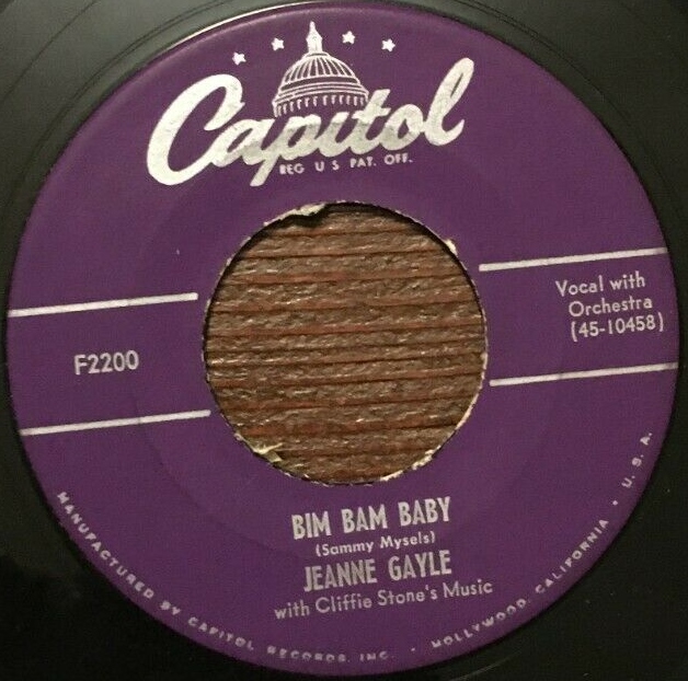 09 52....F2200....JEANNE GAYLE with Cliffie Stone's Music..Bim Bam Baby (45-10458)/It Wasn't God Who Made Honky Tonk Angels (45-10459)