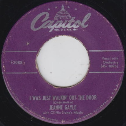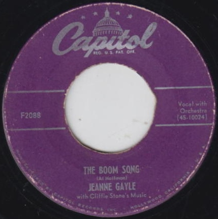 05 52....F2088....JEANNE GAYLE with Cliffie Stone's Music..The Boom Song (45-10024)/I Was Just Walkin' Out The Door (45-10025)