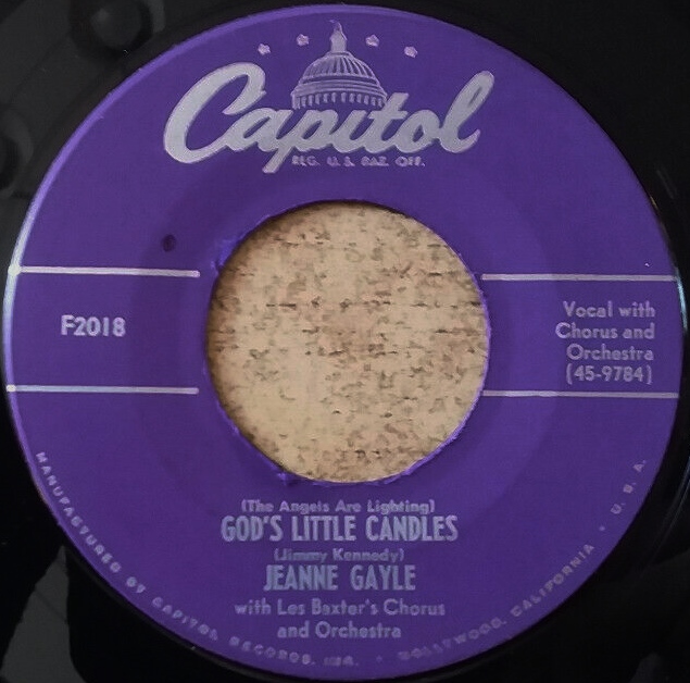 03 52....F2018....JEANNE GAYLE with Les Baxter's Chorus and Orchestra..(The Angels Are Lighting) God's Little Candles (45-9784)/Wondering (45-9785)