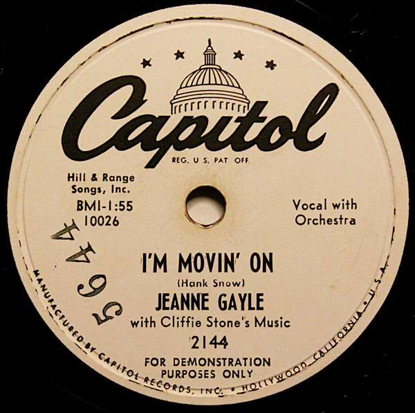 07 52....F2144....JEANNE GAYLE with Cliffie Stone's Music..Mr. Fly-By-Night (45-10028)/I'm Movin' On (45-10026)