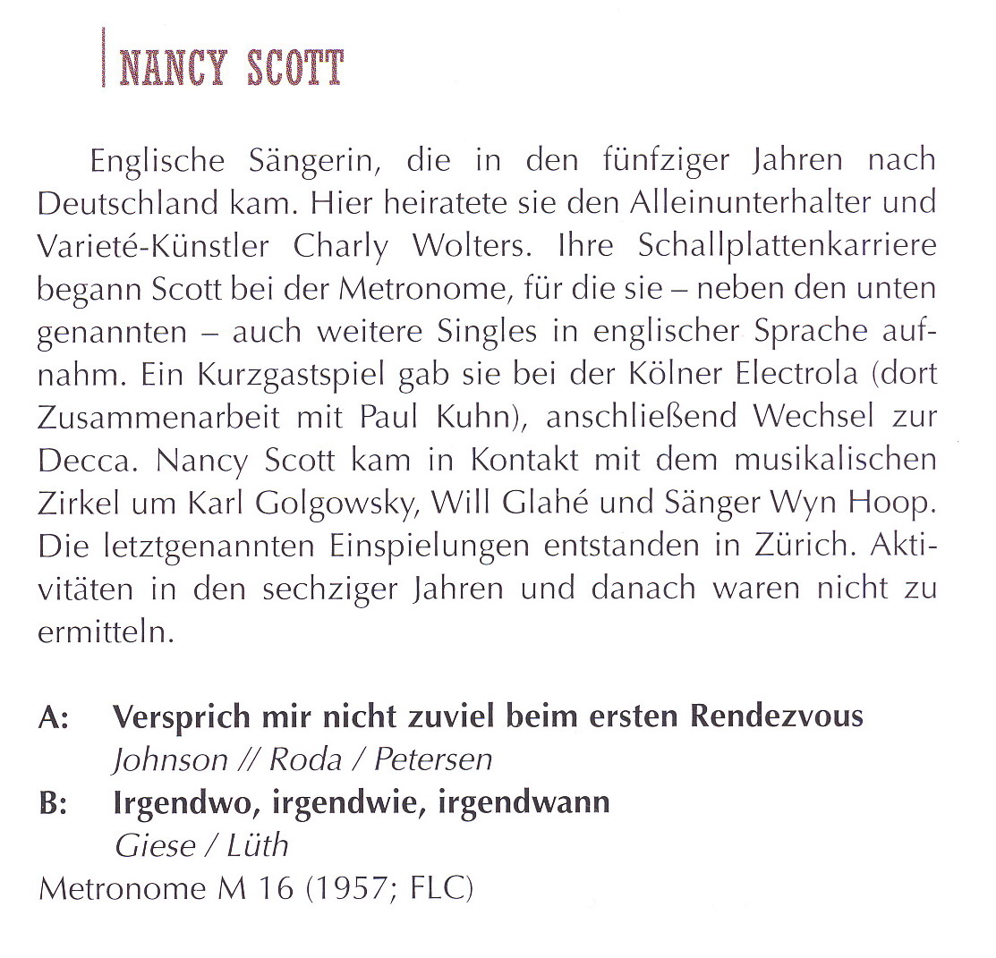 Die Engländerin NANCY SCOTT war in Deutschland auf Metronome, Electrola und Decca