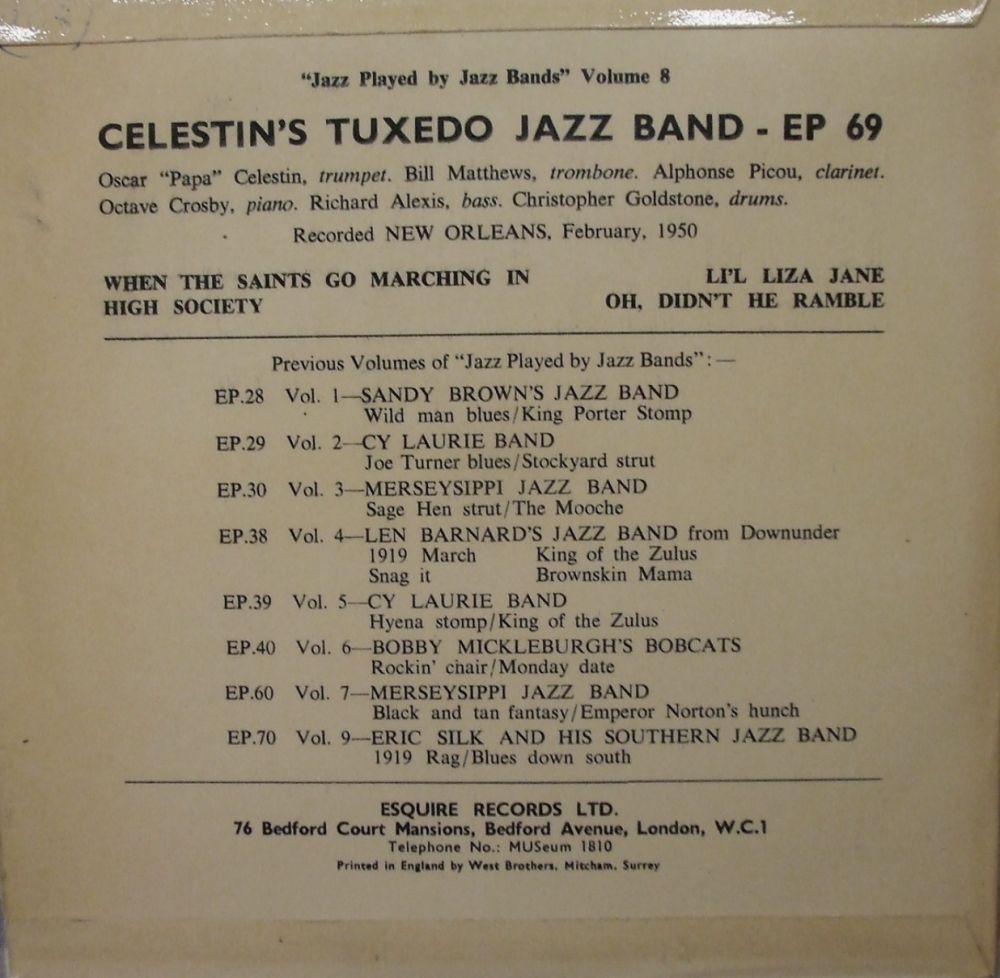 03 55....4-48009....PAPA CELESTIN & his Tuxedo Dixieland Band..Tiger Rag (Hold That Tiger) (ZSP 35249)/At The Darktown Strutters' Ball (ZSP 35250)