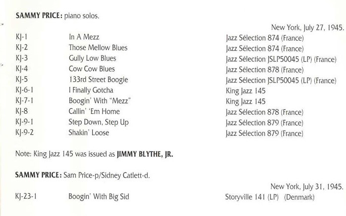 11 56....45-1505-A....SAM PRICE and His Texas Bluesicians..Rib Joint (45 SSP 6893)/-B….Tishomingo (45 SSP 6895)
