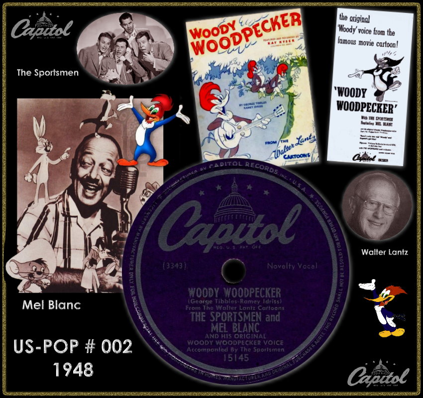 07 48....15145....THE SPORTSMEN and MEL BLANC AND HIS ORIGINAL WOODY WOODPECKER VOICE Accompanied By The Sportsmen..Woody Woodpecker (3343) Y/THE SPORTSMEN with Orchestral Accompaniment..I'd Love To Live In Loveland With A Girl Like You (3195) Z
