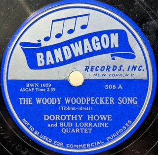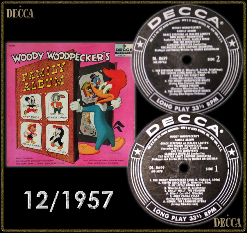 Obwohl Walter Lantz die Comic-Figur des Woody Woodpecker bereits 1940 erstmals vorstellte, war sie bei uns in der zweiten Hälfte der Fünfziger-Jahre ausgesprochen populär, allerdings nicht auf Schallplatte, sondern im Kino. Auch in der Schellackzeit war der "Originallacher" Mel Blanc, wie Billy bereits verriet, erst an vierter Stelle, wie bei folgender Disco zu sehen ist. Der Song stammt übrigens von George Tibbles und Ramey Idriss.