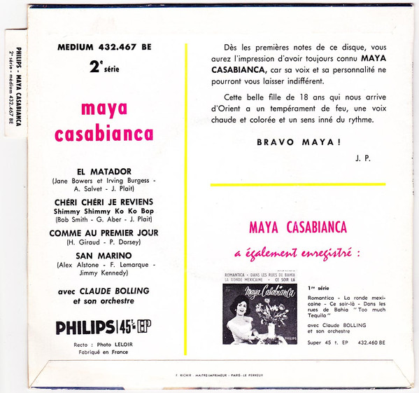 Israel, dann, ab 1956 in Paris, wo sie entdeckt wurde. Hier ist sie nur