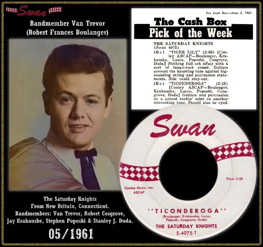 Die Saturday Knights wurden von dem Lead-Gitarristen Van Trevor, der mit zivilen Namen Robert Francis Boulanger hieß, gegründete. Die weiteren Mitglieder der Band waren der Schlagzeuger Bob Cosgrove, Jay Krakauske, Stephen Poposki, und Stanley J. Duda. Michael Lucco war als Autor bei den Musikstücken dabei. Ob er auch bei der Band eine Funktion als Musiker hatte, konnte ich bisher leider nicht eruieren.